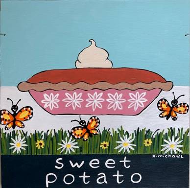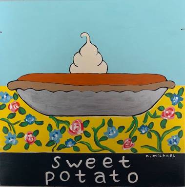 Sweet potato pie #7 11x11 inches acrylic on wood sold |