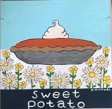 Sweet potato pie #6 11x11 inches acrylic on wood sold |
